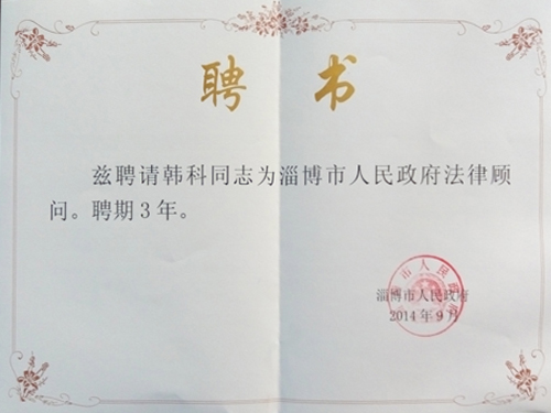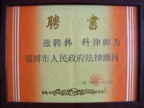 本所律师先后获得省司法厅“防止民间纠纷激化有功个人一等奖”、“十大杰出青年卫士”、“十佳律师”、“优秀办案能手”、“司法系统先进个人”等荣誉称号;被山东省司法厅授予个人一等功,律师多次受到省市各级领导的表彰,先后担任山东省维护企业、企业家权益工作委员会淄博工作站负责人、市政府法律顾问、淄博仲裁委员会仲裁员、市公安局特约监督员、市经济鉴证类中介机构联合会副会长、市行政复议委员会委员、市委市政府法律专家库成员等社会兼职。我们将以此为动力,整合团队资源,实现与委托人的优势互补与共同发展。